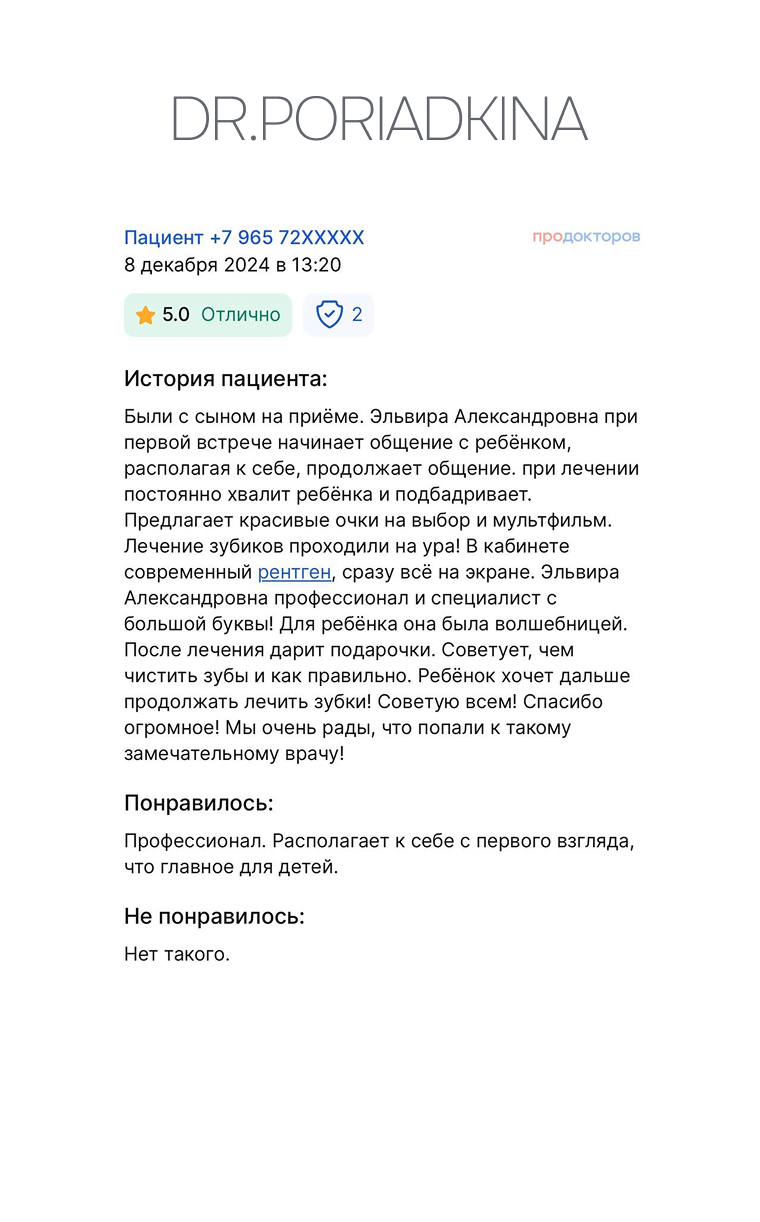 Порядкина Эльвира Александровна - стоматолог, которому доверяют